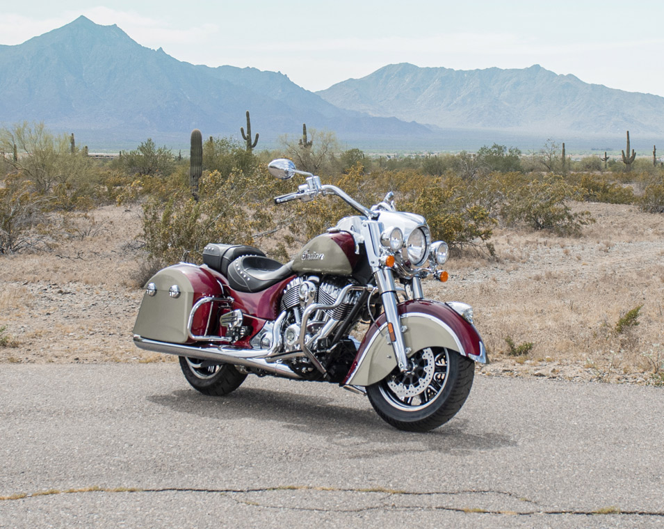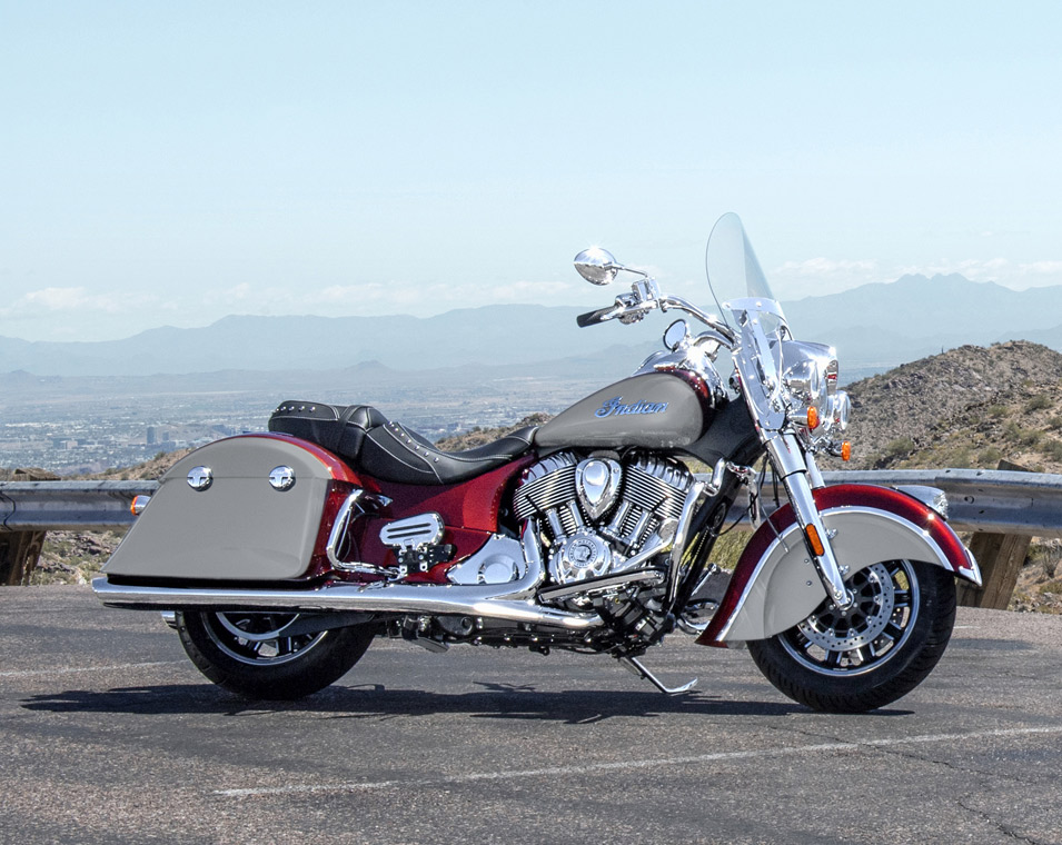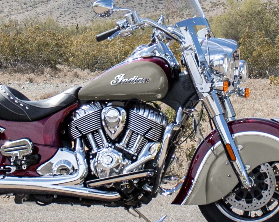 クイックリリース・ウインドシールド、リモートロック式ハードサドルバッグ、ハイウェイバー、ライドモード、ABS、クルーズコントロール、キーレスイグニッション、インディアン®スクリプトタンクバッジ、12V充電ポート
