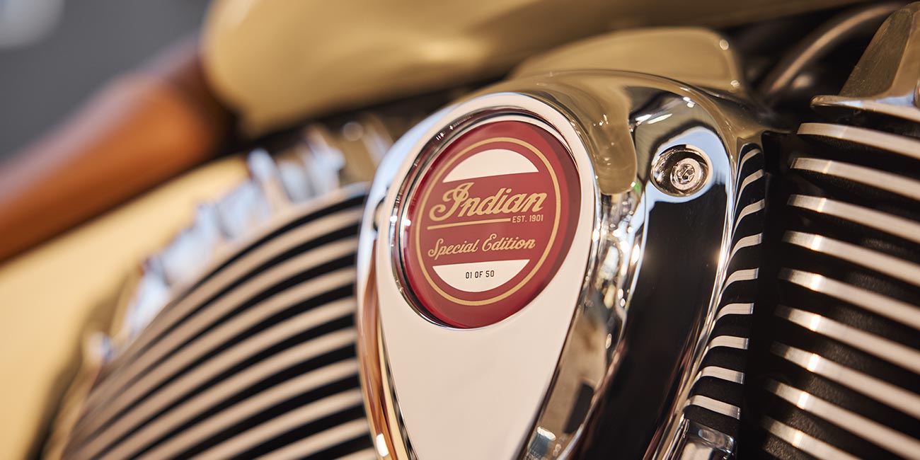 クイックリリースウィンドシールド、タン本革シート、リモートロック式ハードサドルバッグ、ハイウェイバー、パッセンジャーシート&シッシーバー、ライトバー、ライディングモード選択可能、ABS、クルーズコントロール、キーレスイグニッション、Indian®スクリプトタンクバッジ、12V充電ポート